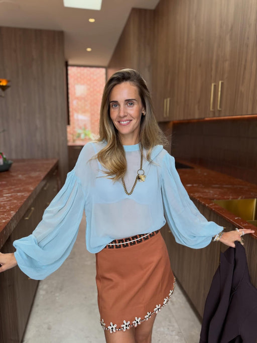 The Starlight Mini with Under Skirt brings bold style with its structured twill fabric and exclusive in-house placement embroidery. The embellished scallop hem with crystals adds a refined touch, while the contrast organza midi under skirt creates movement. Perfect for evening events or chic soirées, pair it with its matching Starlight Sleeveless Tailored Tunic for a complete ensemble or with a sleek blouse or your favourite top for an elevated look.
