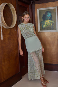 Model height is 175.5cm, bust: 77cm, waist: 60.5cm, hips: 93.5cm and wears a size AU8