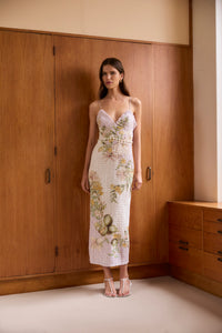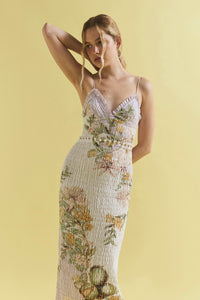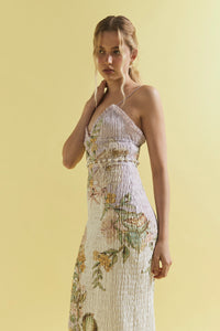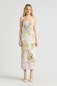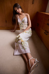 Effortlessly feminine and endlessly versatile, the Sweet Thing Shirred Triangle Bodice Dress in Golden Haze is crafted from soft silk cotton and adorned with an exclusive in-house print, hand-drawn by our founder. Pearl button and loop detailing around the waist allow for a multi-wear look, wear it as a full dress or as a top and skirt. Designed for a flattering fit with comfortable stretch, it’s the perfect piece for both laid-back days and elevated evenings.